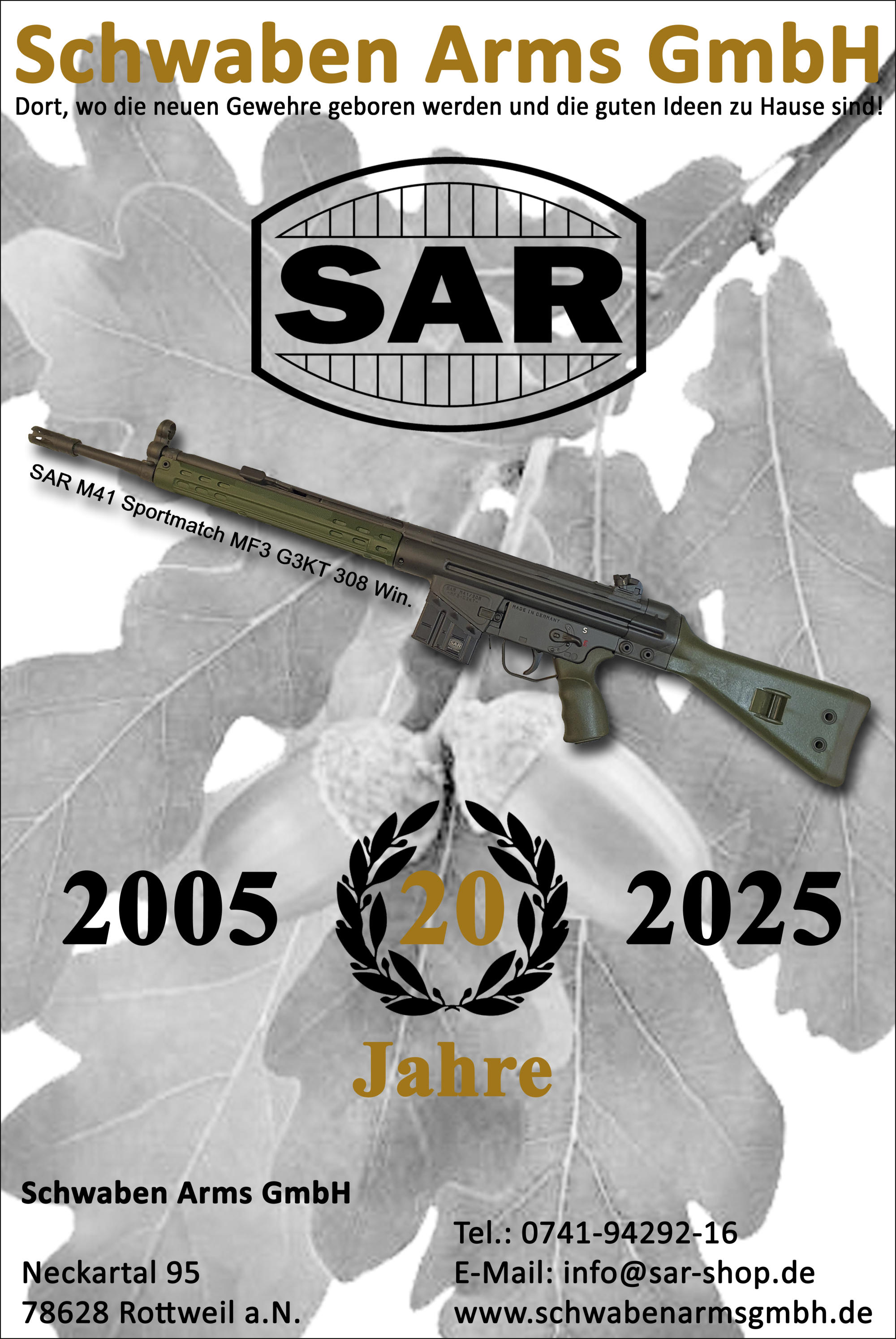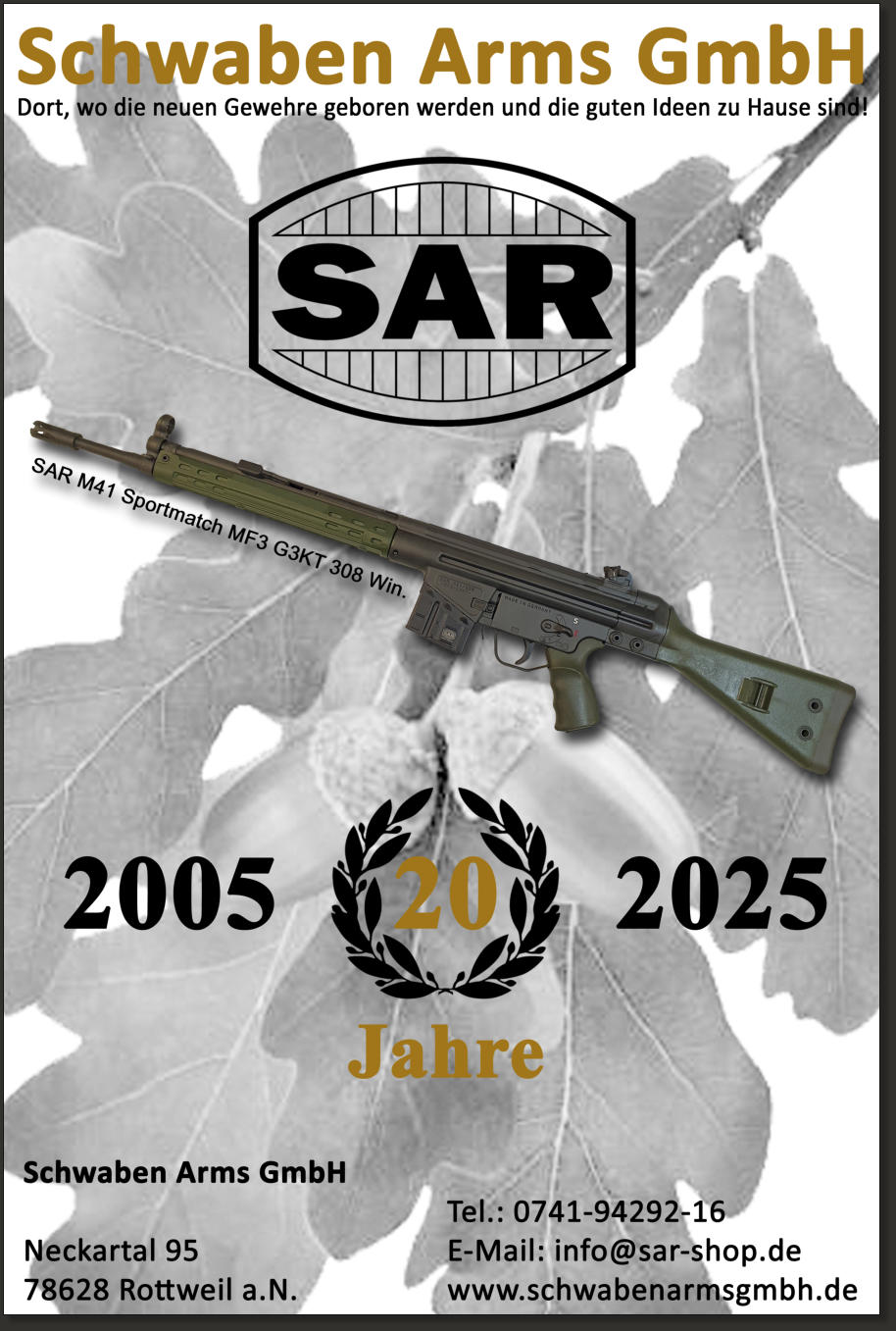 Neckartal 95 • 78628 Rottweil • Fon: +49 (0) 741 - 9429 216 • Fax: +49 (0) 741 - 9429 218 • Mail: schwabenarmsgmbh@web.de • Web: www.schwabenarmsgmbh.de • Shop: www.sar-shop.de